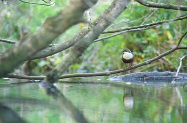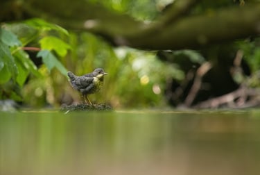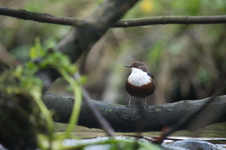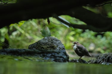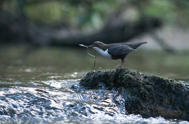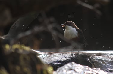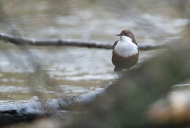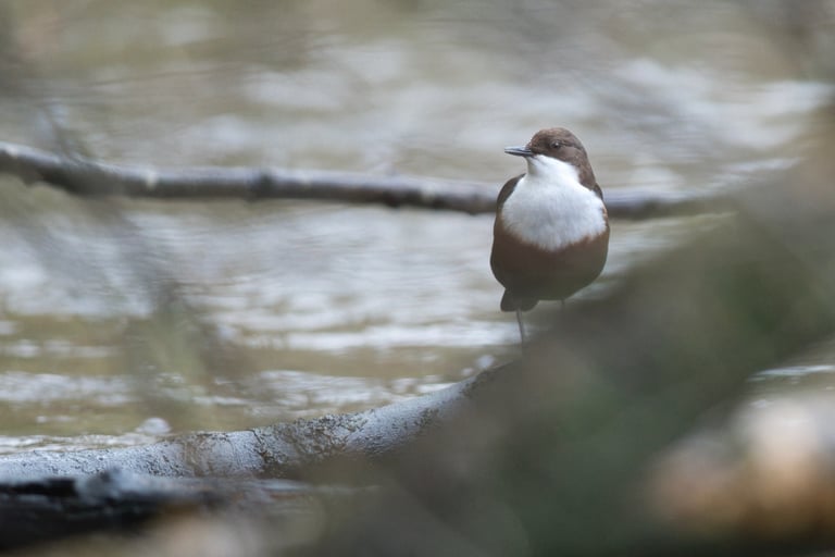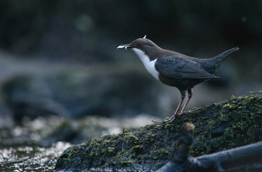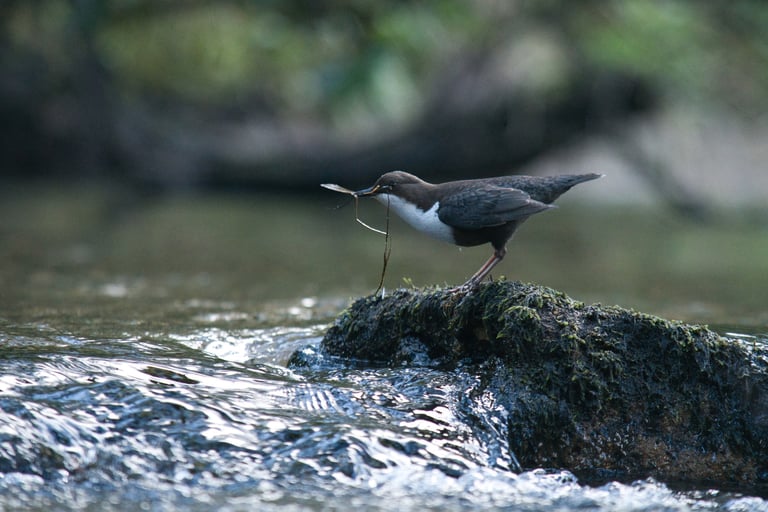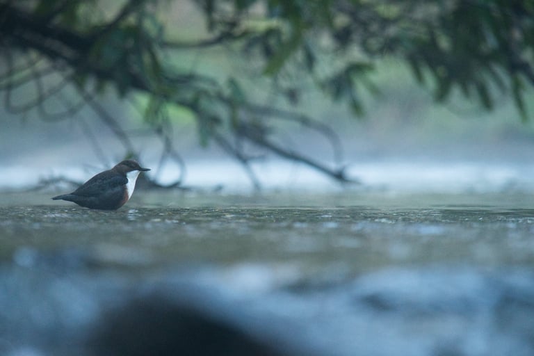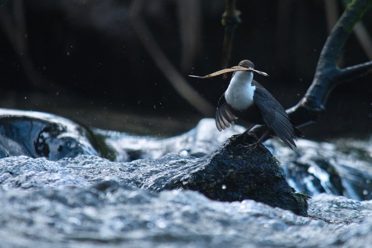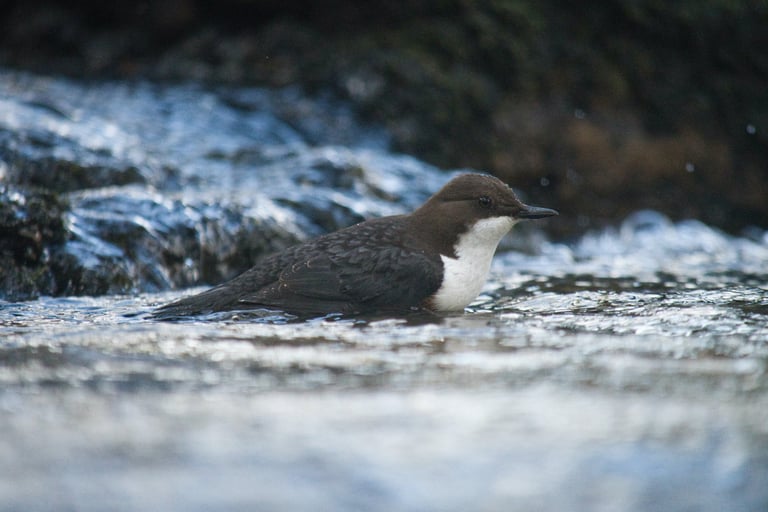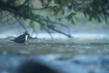 White-throated dippers are perfectly suited to UK rivers and I’m always drawn to their unique charm. Their graceful dives and 'dips' into the fast, cold currents are a sight I never tire of. With their dark plumage and white throat, they stand out beautifully against the flowing water. There's something truly special about how they move, perfectly in sync with the river, creating moments of quiet harmony that I love to capture.